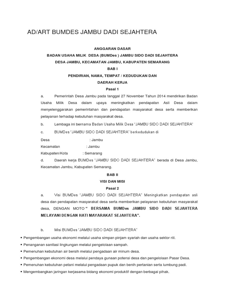 Contoh Ad Art Badan Usaha Milik Desa